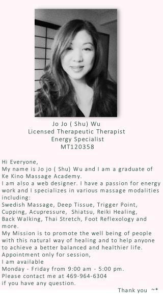 ( Gentle relaxation and directed towards any problem areas, Back Walking and Cupping are optional)